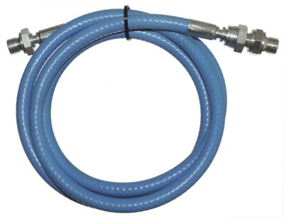 To connect the pump air motor to an air main line. Made of braided PVC, max. working pressure 1,5 MPa (15 bar), swaged couplings; one with swivelling nut and connection adapter (male/male).