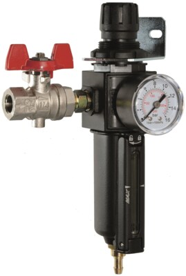 These air treatment units combine the best of design with proven materials and production methods. They can handle air flows up to 900 l/min. Material: Zinc. Volume 40 cm³ (filter/regulator) max working pressure 1,2 MPa (12 bar), temp.+5° to +60 °C