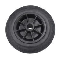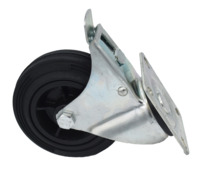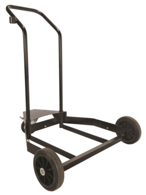 With three wheels, 2 large Ø200 mm and one support wheel Ø100 mm, which is equipped with a brake. The handle is supplied loose.
