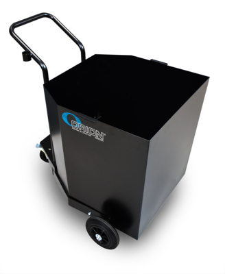 Drum trolley (28645) with three wheels, 2 large Ø200 mm and one support wheel Ø100 mm, which is equipped with a brake. With spill containment, suitable for all sizes and types of drum.
