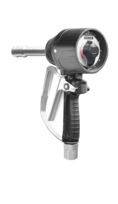 Rotary-piston type, very robust. • Resetable trip meter. • Non-resetable 5 digit totaliser display. •Accuracy +/- 0,65%. • No batteries required, environmental friendly. • Trigger can be locked in open position