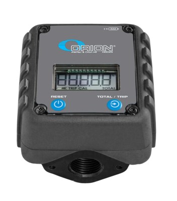 Equipped with current dispense display and resettable trip meter and non-resettable totalisors. Digital display powered by two 1,5 V AAA batteries. Accuracy +/- 0,5 %. Can be calibrated.