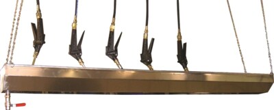 With four 2 metre chains. For use below hose reels to prevent liquid dripping on the floor. Made in