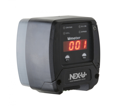 Compact pulse meter with integrated module for communication and control of solenoid valve. LED display showing the dispense point number and delivered volume. Requires 24V DV solenoid valve. Communication: CAN bus
