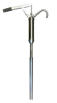 For transfer of oil and non corrosive fluids from 60 litre (110 lbs) and 208 litre (400 lbs) drums. Made of aluminium and steel with Nitrile seal, rigid outlet pipe, bung adaptor and telescopic suction tube. Capacity 0,45 l/stroke (0.12USG/stroke) approx. 16l/min (4 1/4 USG/min)