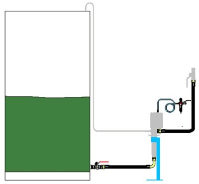 Installation kit for a remote floor mounted air operated pump with a suction hose connected to a tank