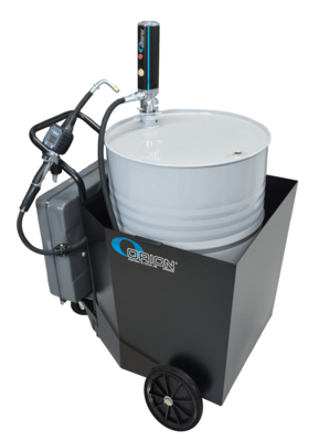Consists of an oil pump 22815, hose reel 10m 26432 with hose end meter 20371 and drum trolley 28392. The drum is placed on an safety trolley which means that if the drum were to start leaking, there will be no spillage on the floor or ground. When there is no area to normally park ordinary drum trolleys at the end of the day, this is the ideal solution. Perfect for service in the field in construction-, miningand marine sectors and other sensitive environments.