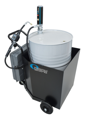 Consists of an oil pump 22815, hose reel 10m 26432 with hose end meter 20371 and drum trolley 28390. The drum is placed on an safety trolley which means that if the drum were to start leaking, there will be no spillage on the floor or ground. When there is no area to normally park ordinary drum trolleys at the end of the day, this is the ideal solution. Perfect for service in the field in construction-, miningand marine sectors and other sensitive environments.