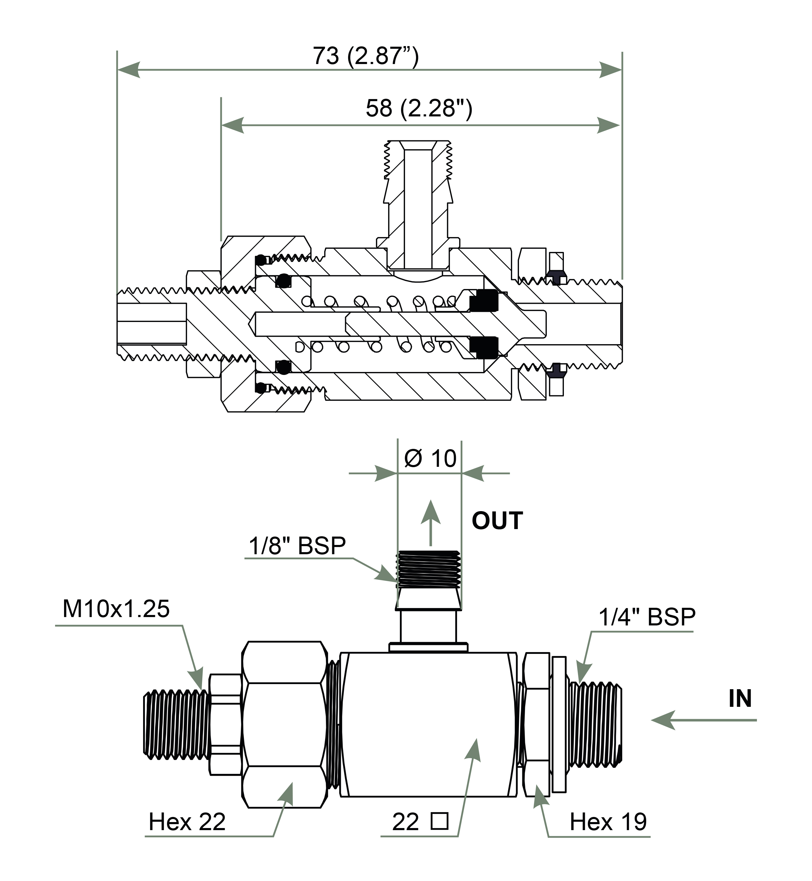 For pneumatic pumps to limit overpressure in the fluid line, generated, for instance, by thermal expansion. Regulated by an Allen screw.