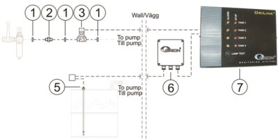 Used to prevent air from entering the pump tube and dry running the pump when the drum is empty. Level sensor made of plastic, resistant to fluids commonly supplied in 208 litre drums or 1000 litre container. Equipment delivered unassembled in a kit consisting of the following: Solenoid valve 24V DC, G1/2” (f) (48080), Control panel (23430), Low level sensor (23183), (for oil use 23171, not included), Ex ia barrier (EEX ia) 11C appr. (23187) 230-240 V AC
