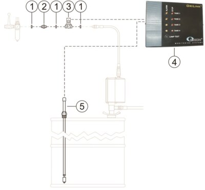 Used to prevent air from entering the pump tube and dry running the pump when the drum is empty. Level sensor made of plastic, resistant to fluids commonly supplied in 208 litre drums. Equipment delivered unassembled in a kit consisting of the following:3 Solenoid valve, 24V DC, G1/4” (f) (48059)4Control panel, (23430)5Low level sensor (23171), (for alcohol use 23183)