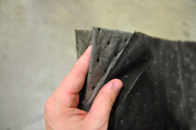 Absorbents. Absorbs and retains oil, water, solvents, coolants, etc. Available in various weights. Keeps floors clean and dry. Place under and around machinery, use to line shelves, and for clean-up applications. Use as a rag for quick wipe-ups. Dimple bonded for strength. Center perfed for a customized fit.