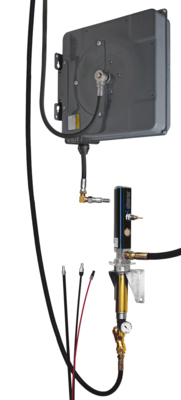 Complete kit to drain waste oil using probes. The kit includes the following: hose reel 36441, suction pump 22802, wall bracket, quick coupling with suction probes 2295014, suction strainer with vacuum gauge and air quick coupling. Capacity when using Ø 8 mm suction probe (engine oil +60 °C): 2 l/min.